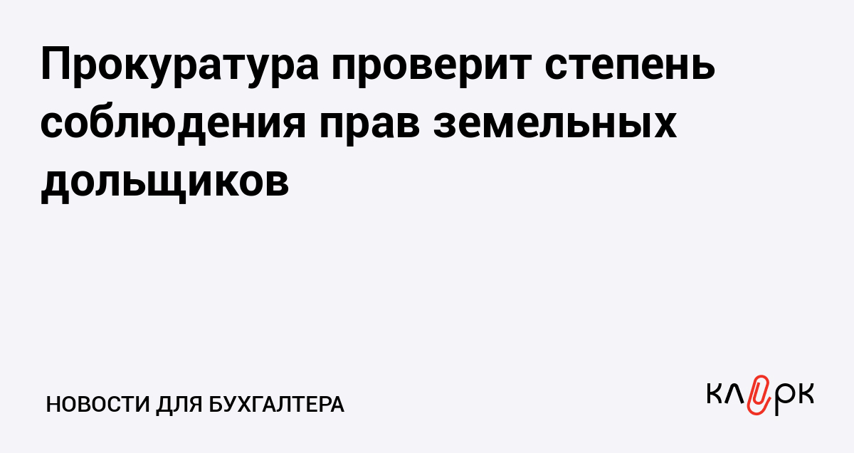 Прокуратура проверит степень соблюдения прав земельных дольщиков