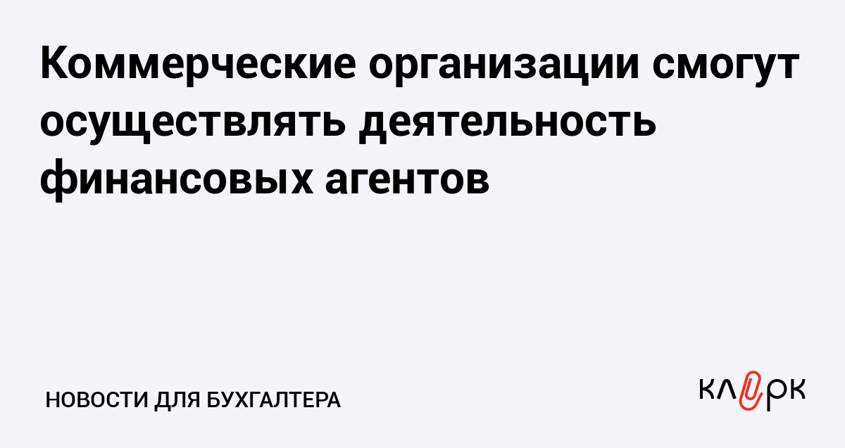 Коммерческие организации смогут осуществлять деятельность финансовых агентов