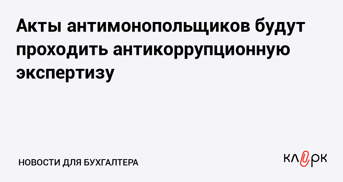 Акты антимонопольщиков будут проходить антикоррупционную экспертизу