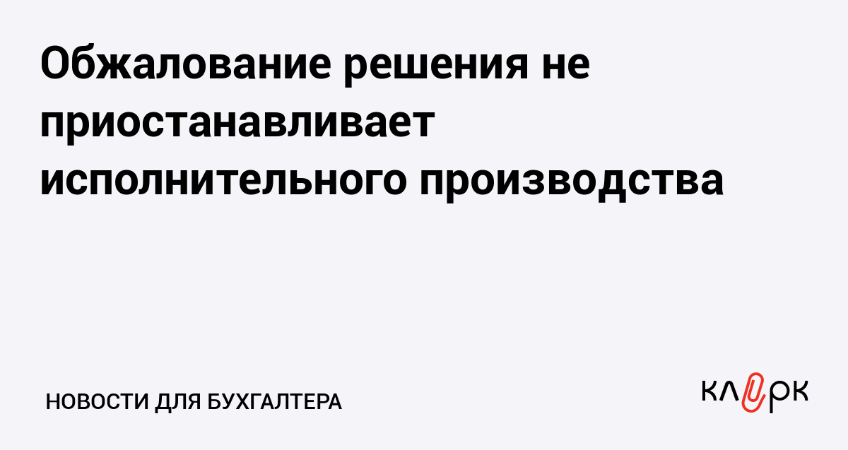 Обжалование решения не приостанавливает исполнительного производства