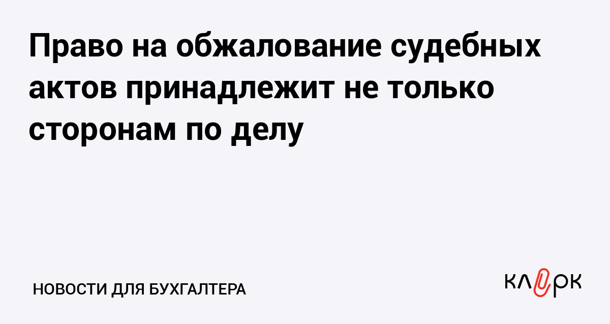 Право на обжалование судебных актов принадлежит не только сторонам по делу