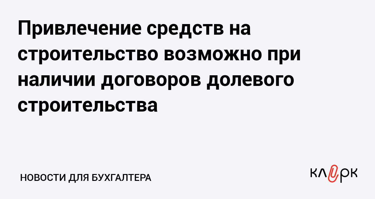 Привлечение средств на строительство возможно при наличии договоров долевого строительства