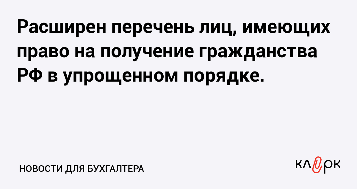 Расширен перечень лиц, имеющих право на получение гражданства РФ в упрощенном порядке.