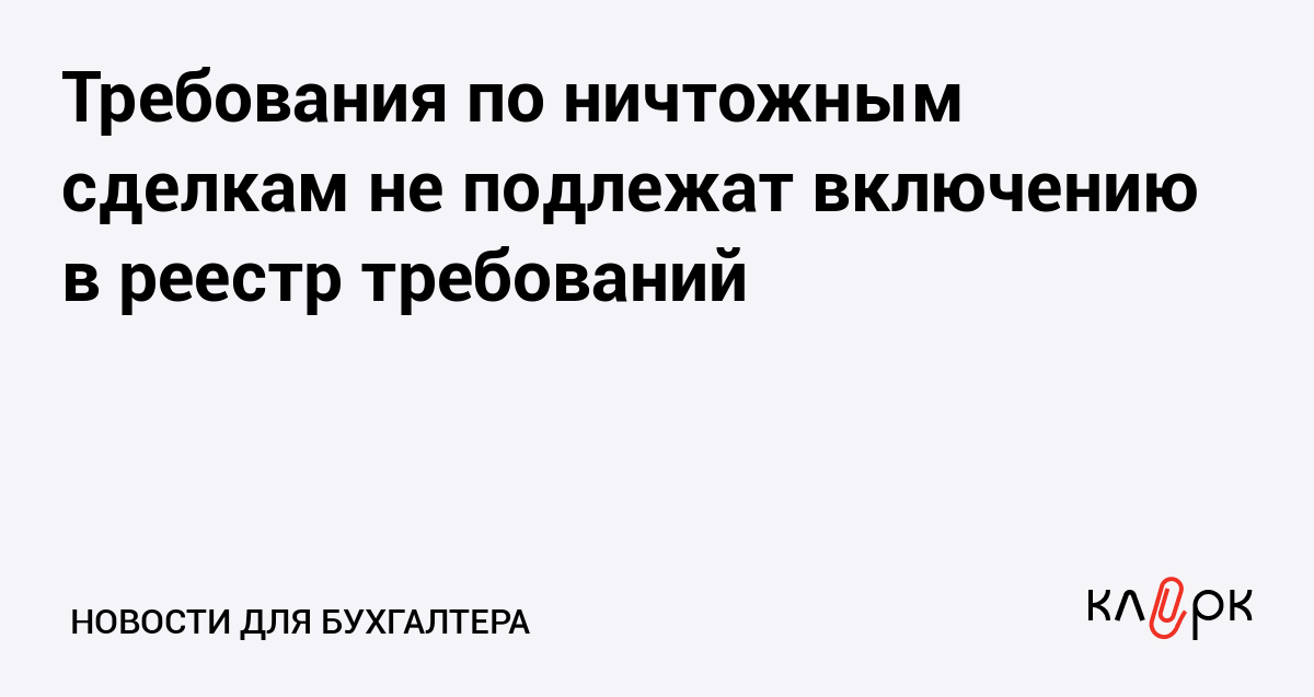 Требования по ничтожным сделкам не подлежат включению в реестр требований