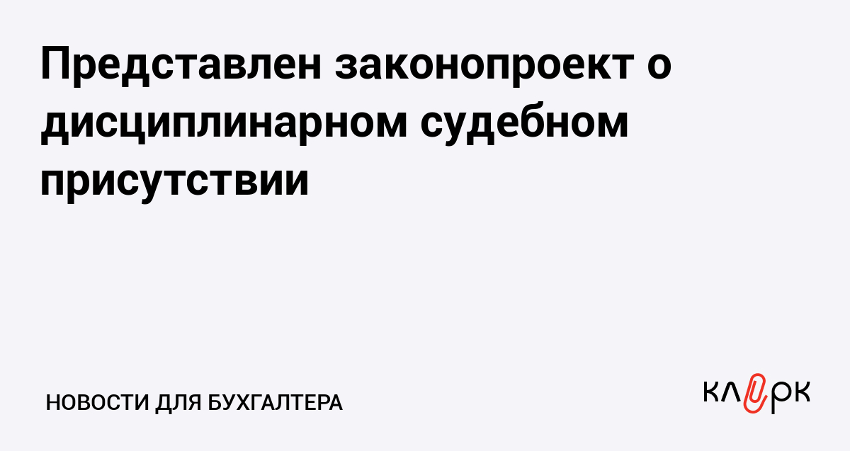 Президент Дмитрий Медведев внес на рассмотрение в Госдуму проект конституционного закона “О дисциплинарном судебном присутствии”, регламентирующий вопросы создания органа, который будет заниматься рассмотрением дисциплинарных проступков судей.
