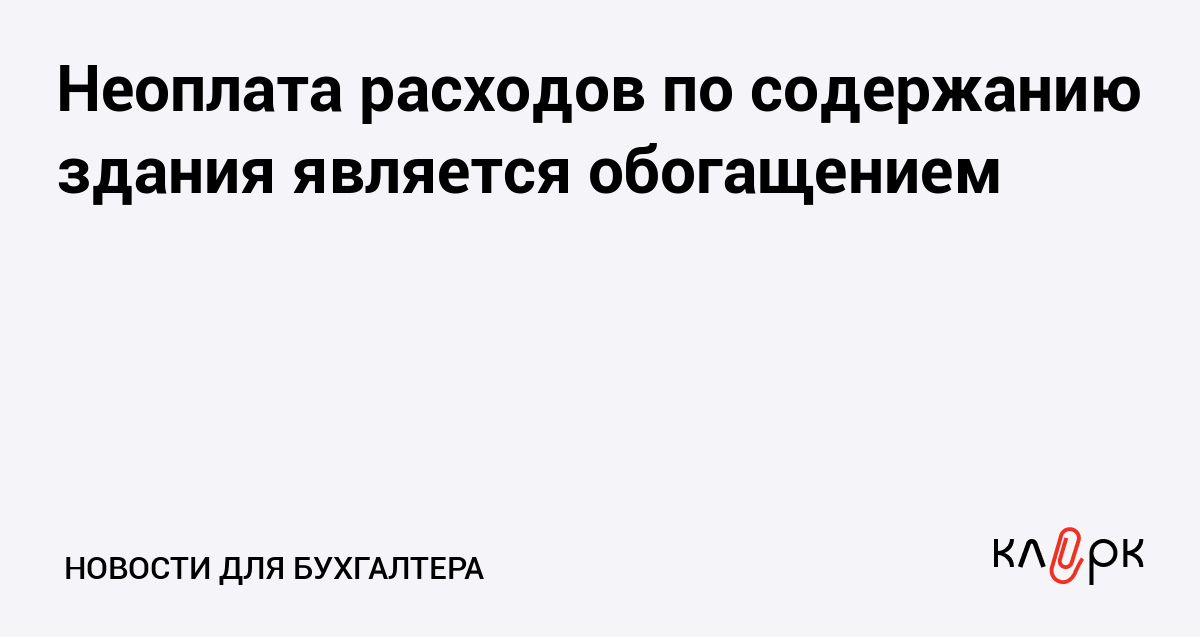 Неоплата расходов по содержанию здания является обогащением