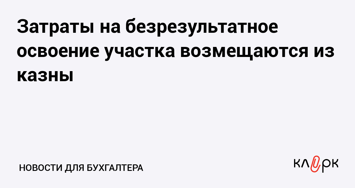 Затраты на безрезультатное освоение участка возмещаются из казны