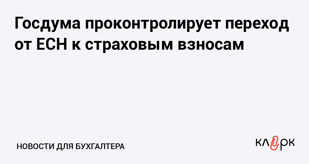 Госдума проконтролирует переход от ЕСН к страховым взносам