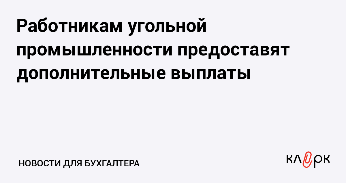 Работникам угольной промышленности предоставят дополнительные выплаты