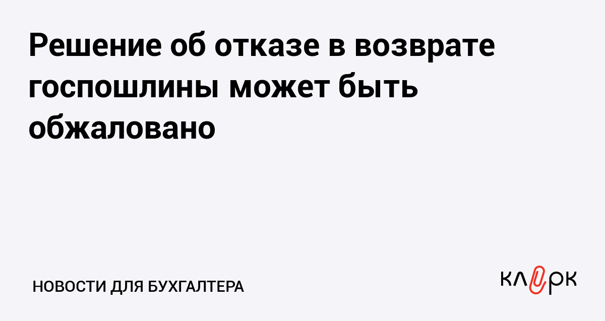 Решение об отказе в возврате госпошлины может быть обжаловано