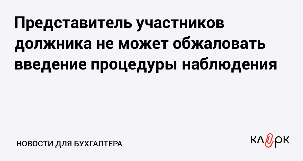 Представитель участников должника не может обжаловать введение процедуры наблюдения
