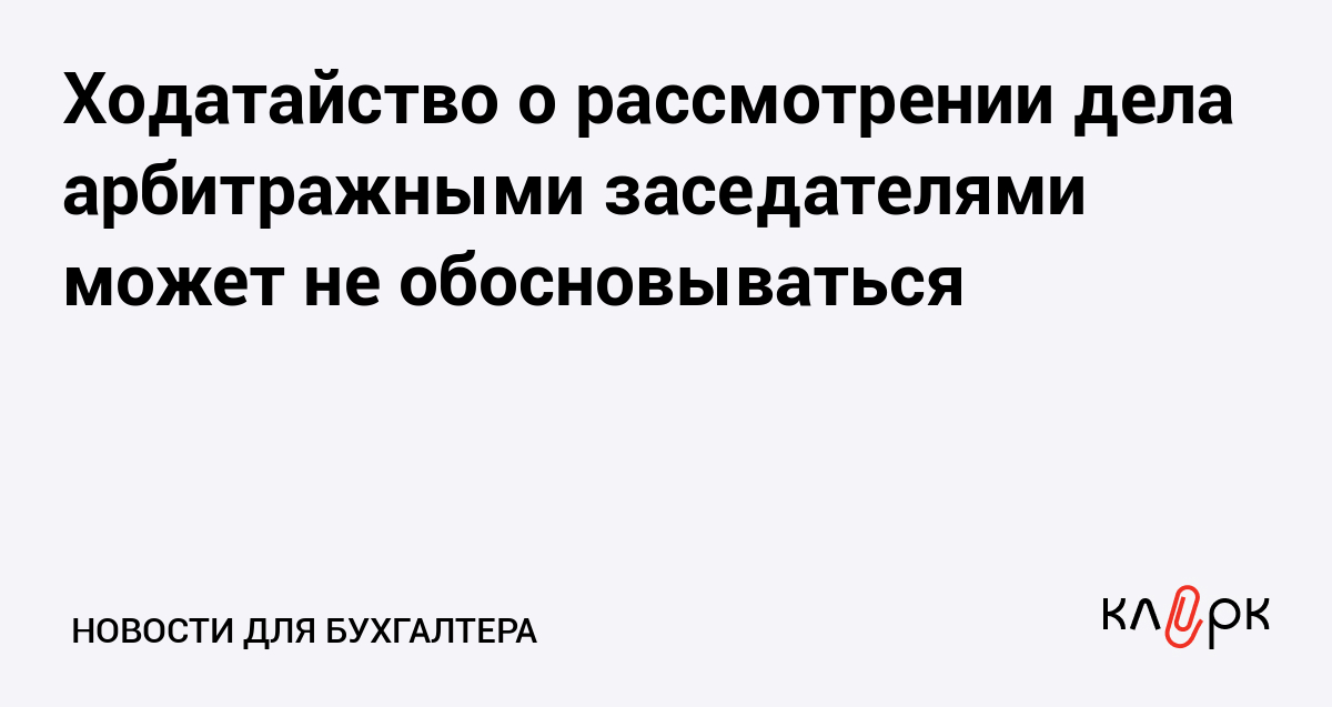 Ходатайство о рассмотрении дела арбитражными заседателями может не обосновываться