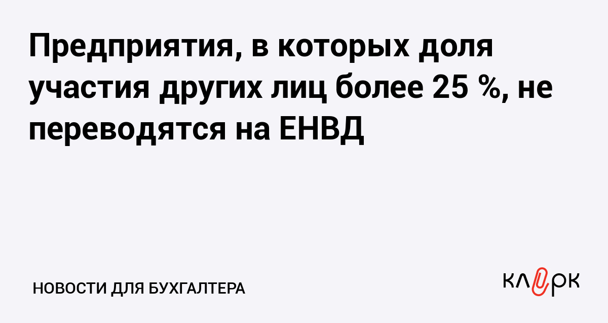 Предприятия, в которых доля участия других лиц более 25 %, не переводятся на ЕНВД