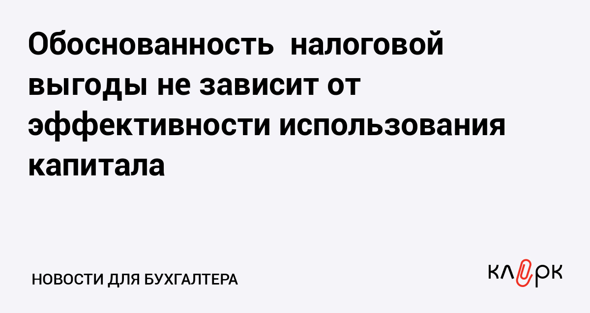 Обоснованность налоговой выгоды не зависит от эффективности использования капитала