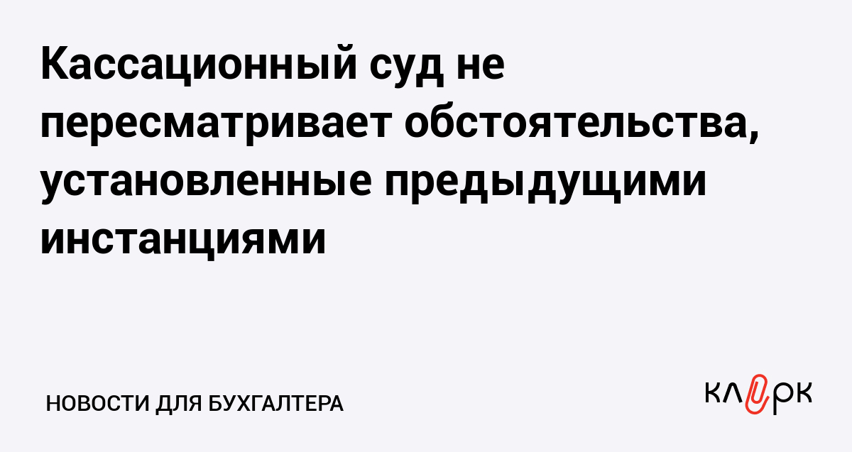 Кассационный суд не пересматривает обстоятельства, установленные предыдущими инстанциями