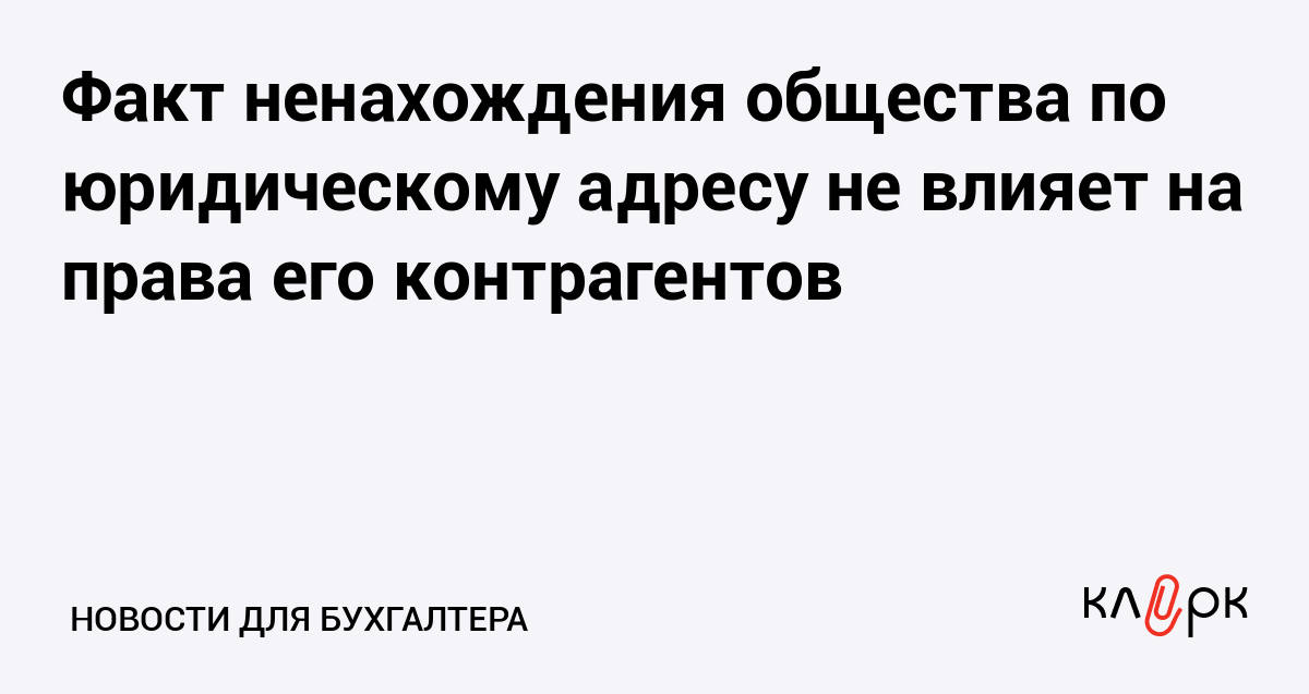 Факт ненахождения общества по юридическому адресу не влияет на права его контрагентов