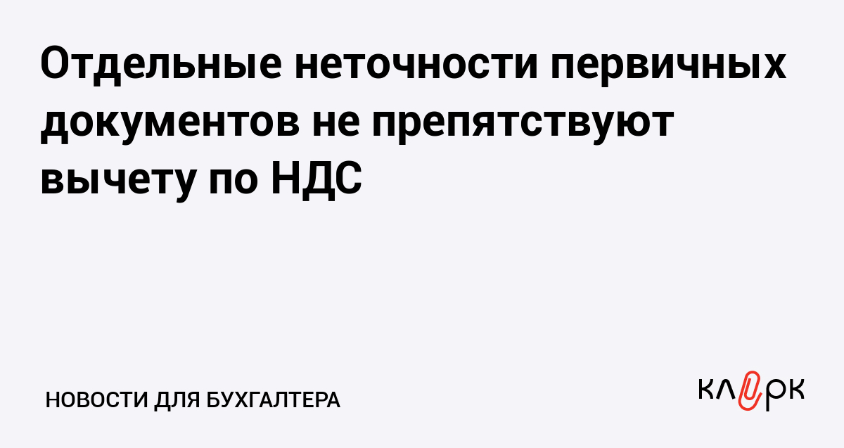 Отдельные неточности первичных документов не препятствуют вычету по НДС