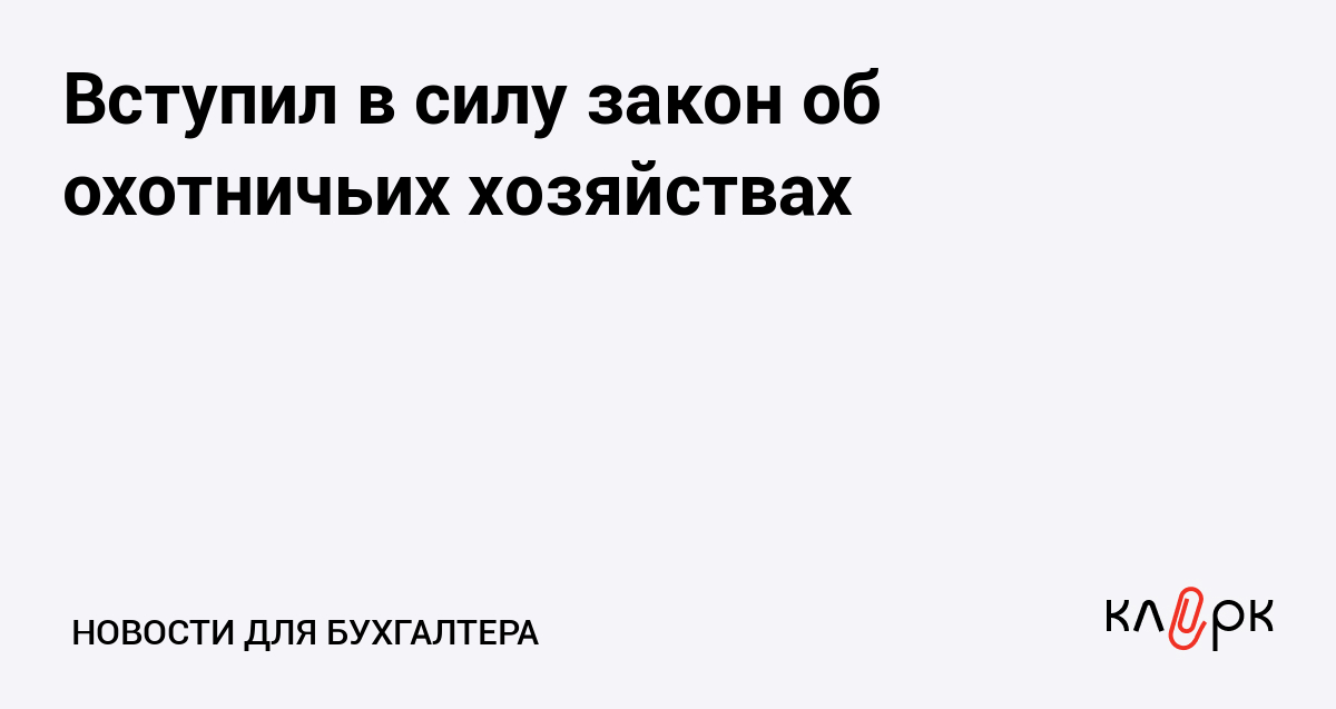 Вступил в силу закон “Об охоте и о сохранении охотничьих ресурсов”, утверждающей основы стабильной системы законодательства в области охоты и ведения охотничьего хозяйства.