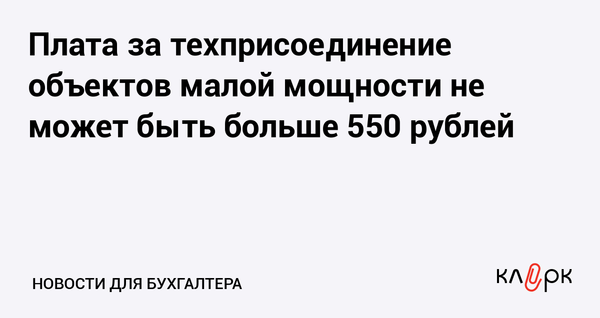 Плата за техприсоединение объектов малой мощности не может быть больше 550 рублей