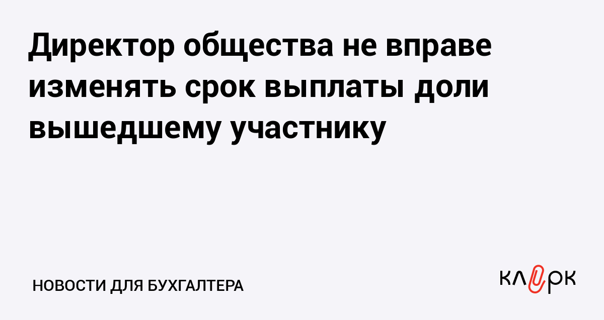 Директор общества не вправе изменять срок выплаты доли вышедшему участнику