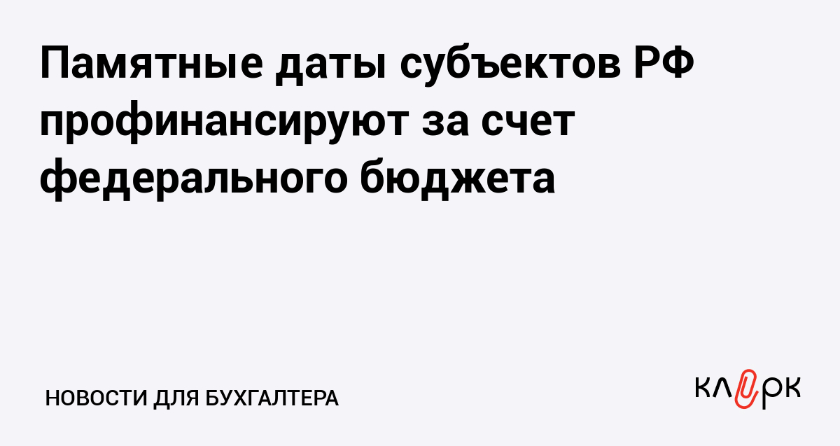 Памятные даты субъектов РФ профинансируют за счет федерального бюджета