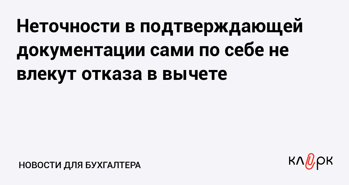 Неточности в подтверждающей документации сами по себе не влекут отказа в вычете