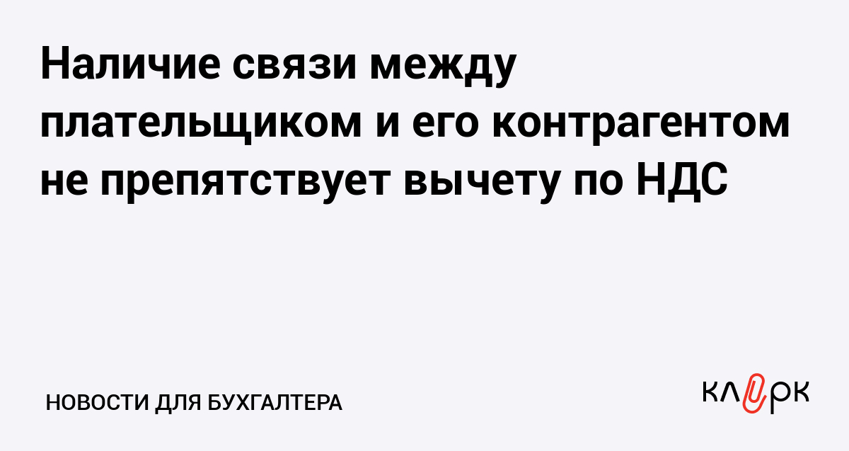 Наличие связи между плательщиком и его контрагентом не препятствует вычету по НДС