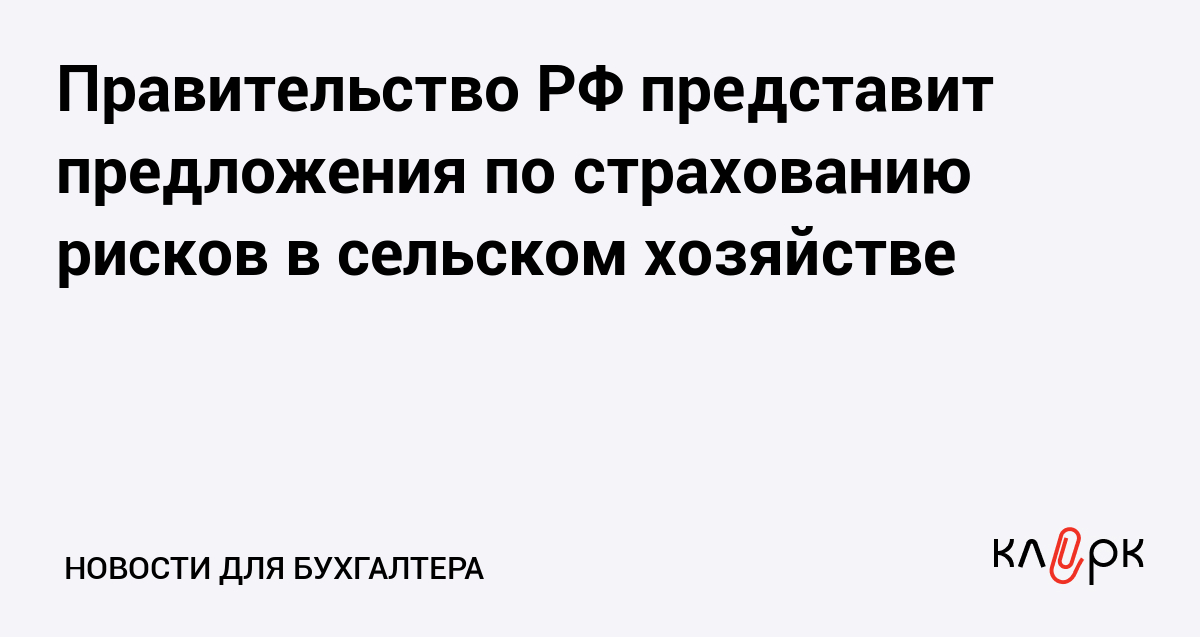 Кроме того, Правительство РФ представит предложения по формированию экономически эффективной и работоспособной системы страхования рисков в сельском хозяйстве, обеспечив при этом соблюдение баланса интересов и четкую регламентацию ответственности страховых организаций, сельскохозяйственных товаропроизводителей, Российской Федерации, субъектов Российской Федерации, а также по внесению соответствующих изменений в законодательство Российской Федерации.