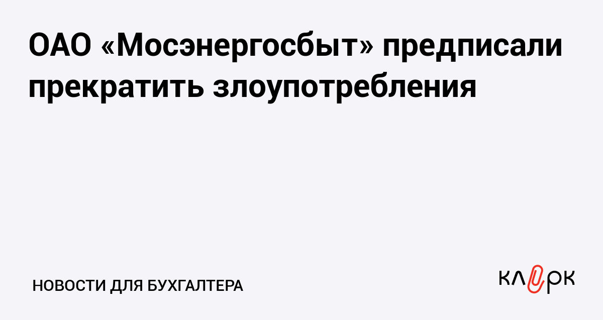 ОАО «Мосэнергосбыт» предписали прекратить злоупотребления
