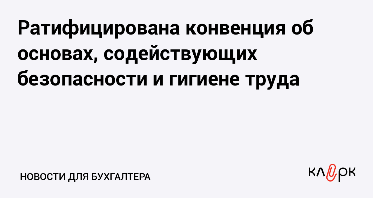 Ратифицирована конвенция об основах, содействующих безопасности и гигиене труда