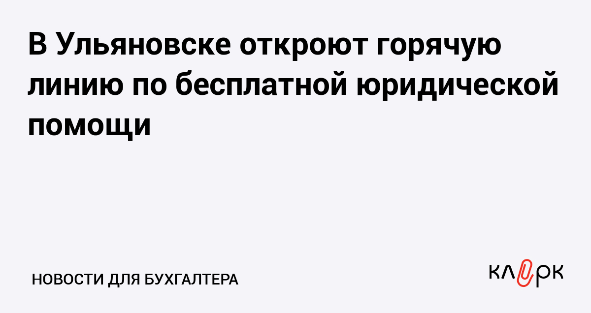 Как сообщает пресс-служба ФПА РФ, Горячая линия по бесплатной юридической помощи начнет работать в Ульяновском регионе с середины декабря 2010 г. Диспетчеры линии будут предоставлять гражданам справки по правовым вопросам, оказывать первичную правовую консультацию и направлять обратившихся, исходя из характера дела, в соответствующие компетентные организации.