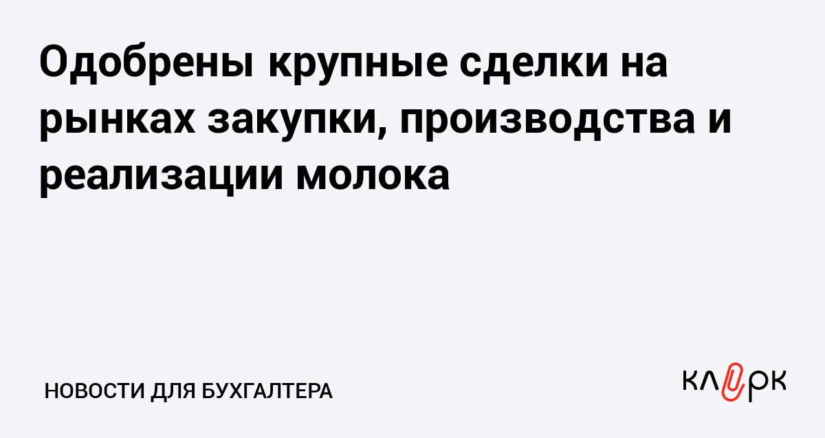 Одобрены крупные сделки на рынках закупки, производства и реализации молока