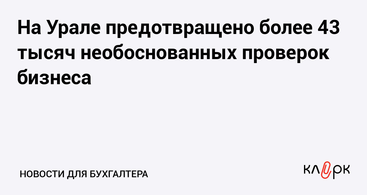 На Урале предотвращено более 43 тысяч необоснованных проверок бизнеса