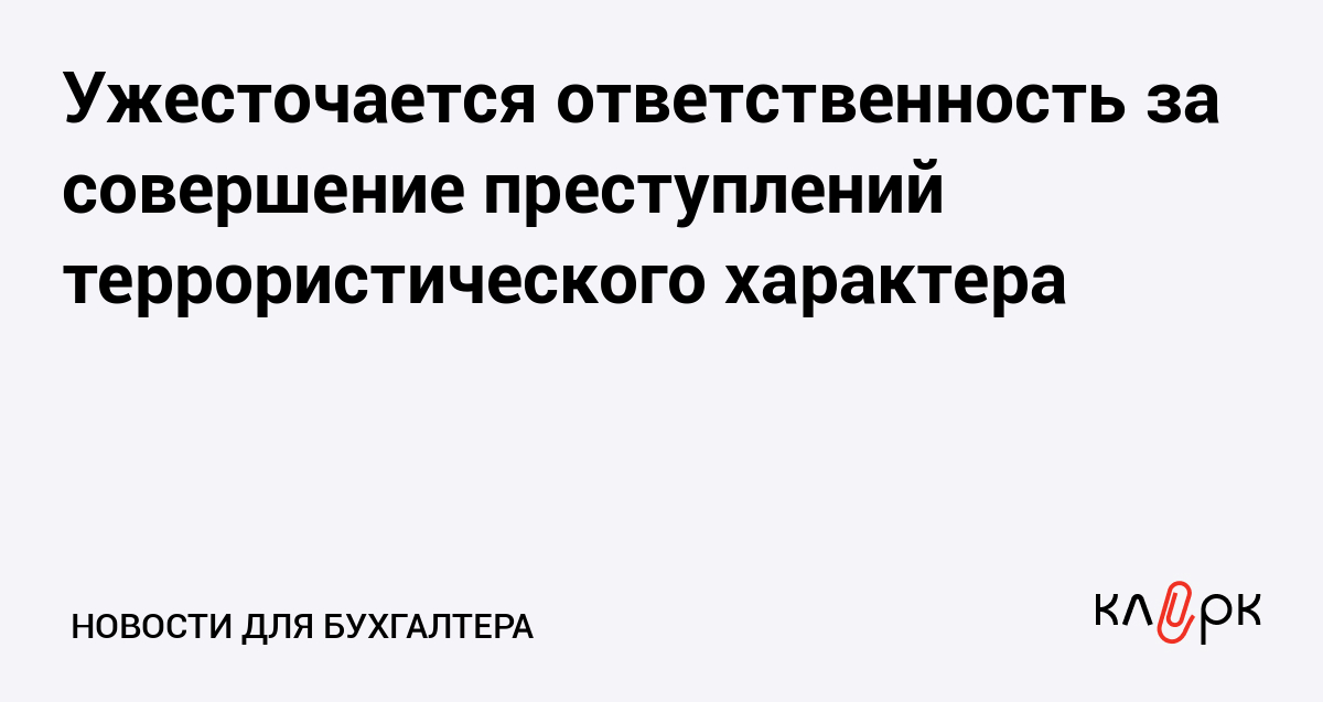 Согласно документу, публичные призывы к осуществлению террористической деятельности или публичное оправдание терроризма влекут наложение штрафа в размере до пятисот тысяч рублей либо в размере заработной платы или иного дохода осужденного за период до трех лет либо лишение свободы на срок от двух до пяти лет.
