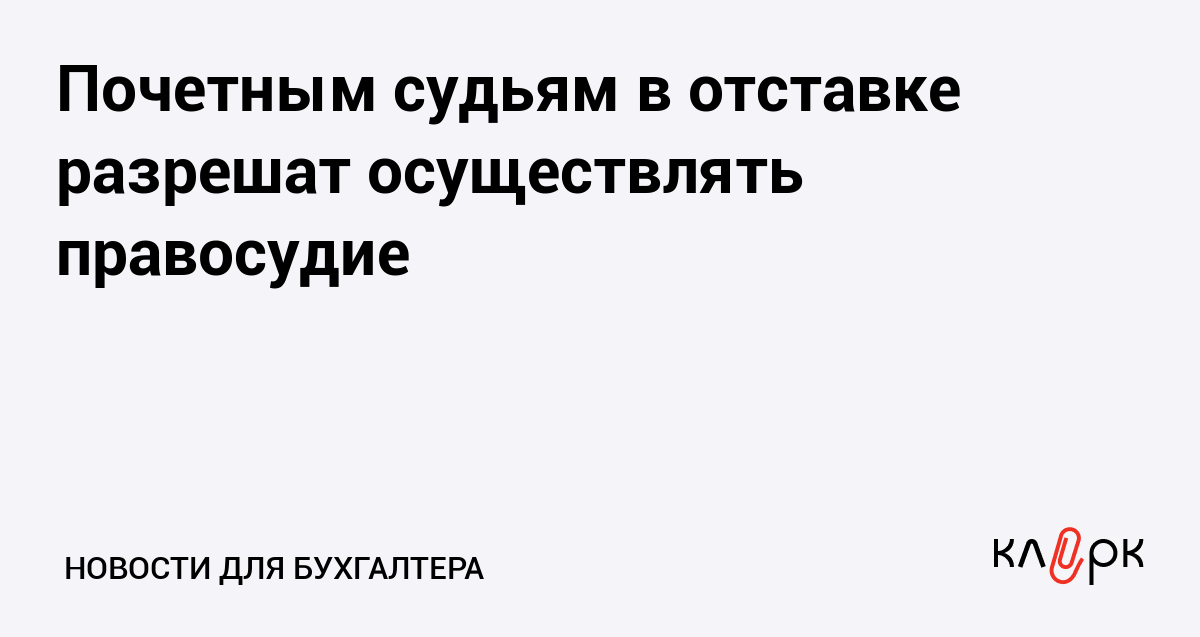 Почетным судьям в отставке разрешат осуществлять правосудие