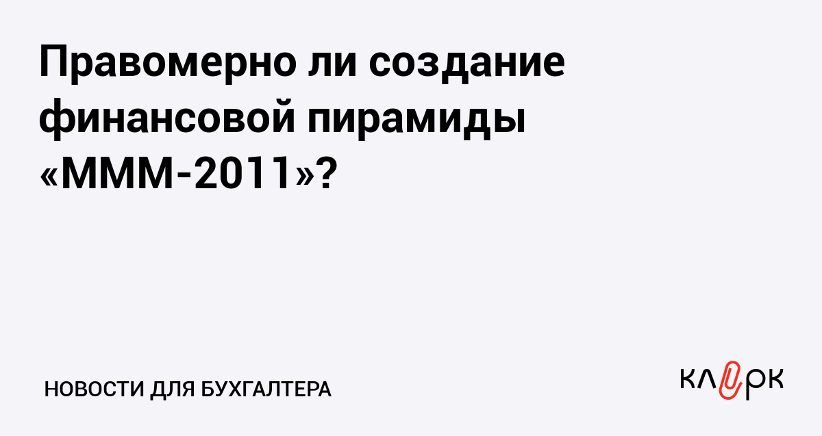 Правомерно ли создание финансовой пирамиды «МММ-2011»?