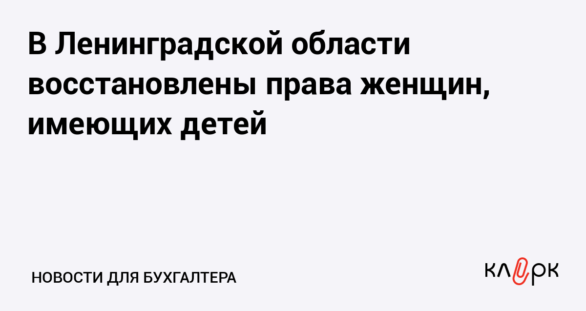 В Ленинградской области восстановлены права женщин, имеющих детей