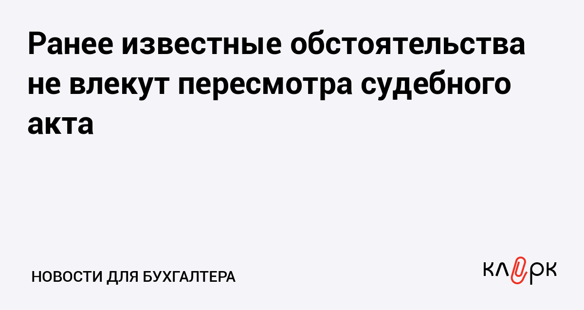 Ранее известные обстоятельства не влекут пересмотра судебного акта