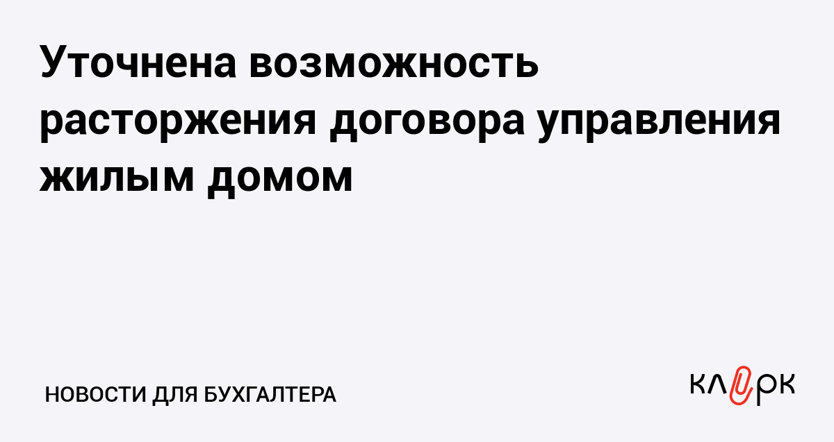 Уточнена возможность расторжения договора управления жилым домом