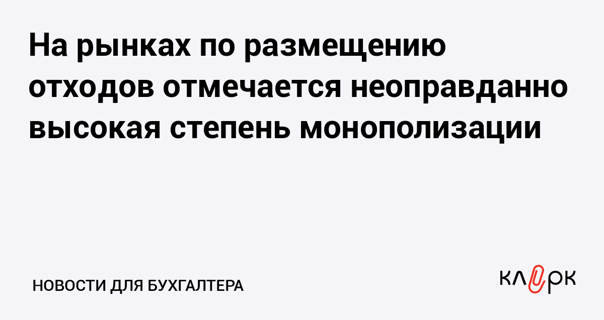 На рынках по размещению отходов отмечается неоправданно высокая степень монополизации