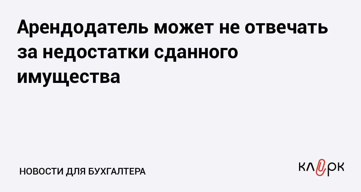 Арендодатель может не отвечать за недостатки сданного имущества