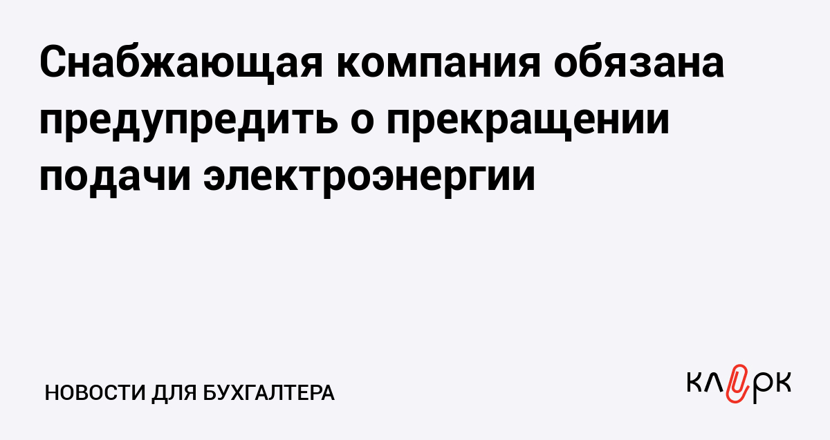 Снабжающая компания обязана предупредить о прекращении подачи электроэнергии
