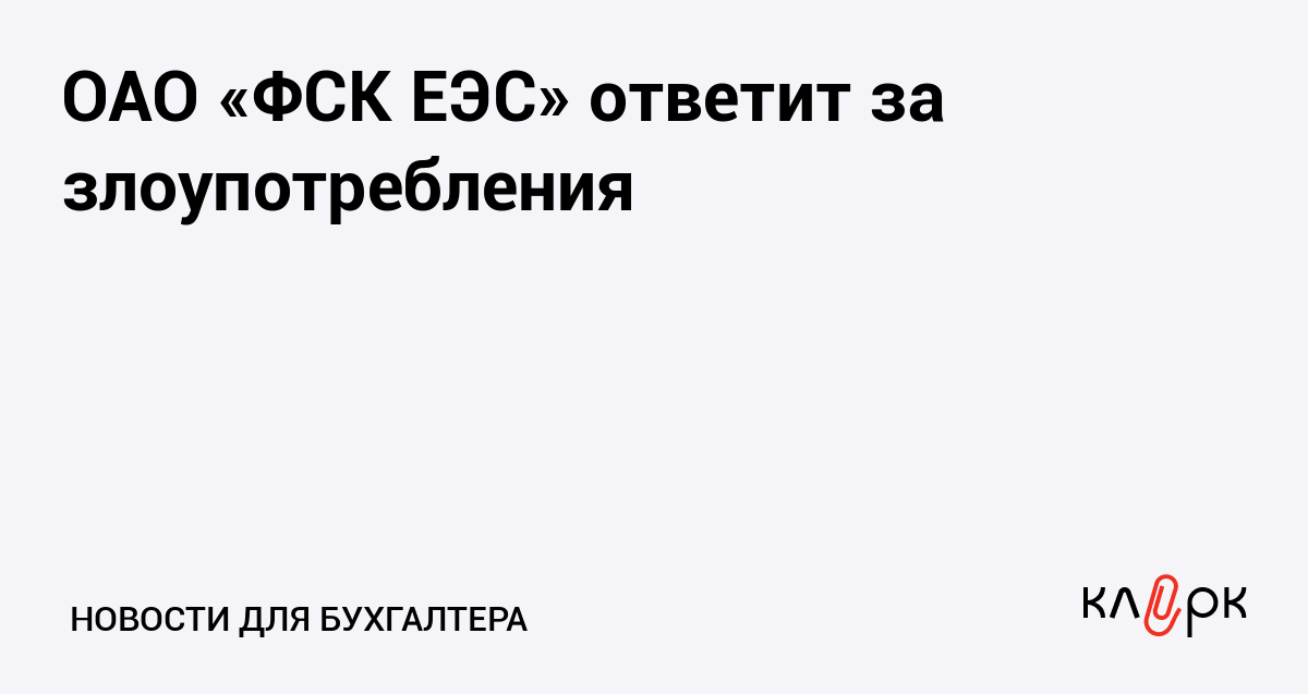 ОАО «ФСК ЕЭС» ответит за злоупотребления