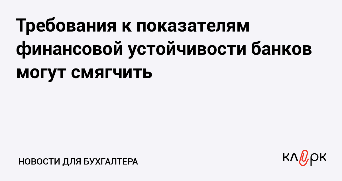 Требования к показателям финансовой устойчивости банков могут смягчить