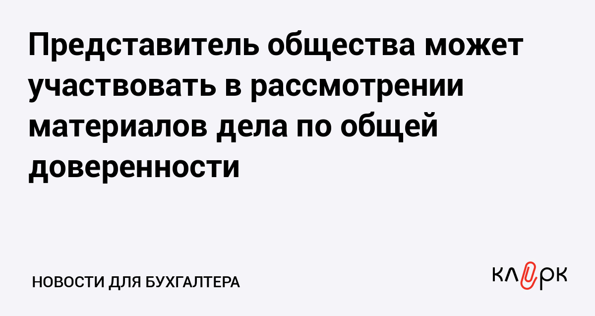 Представитель общества может участвовать в рассмотрении материалов дела по общей доверенности