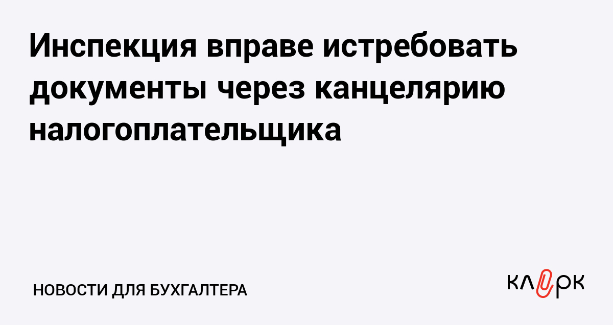 Инспекция вправе истребовать документы через канцелярию налогоплательщика