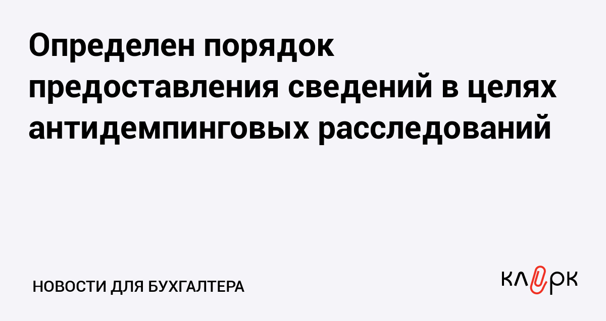 Определен порядок предоставления сведений в целях антидемпинговых расследований