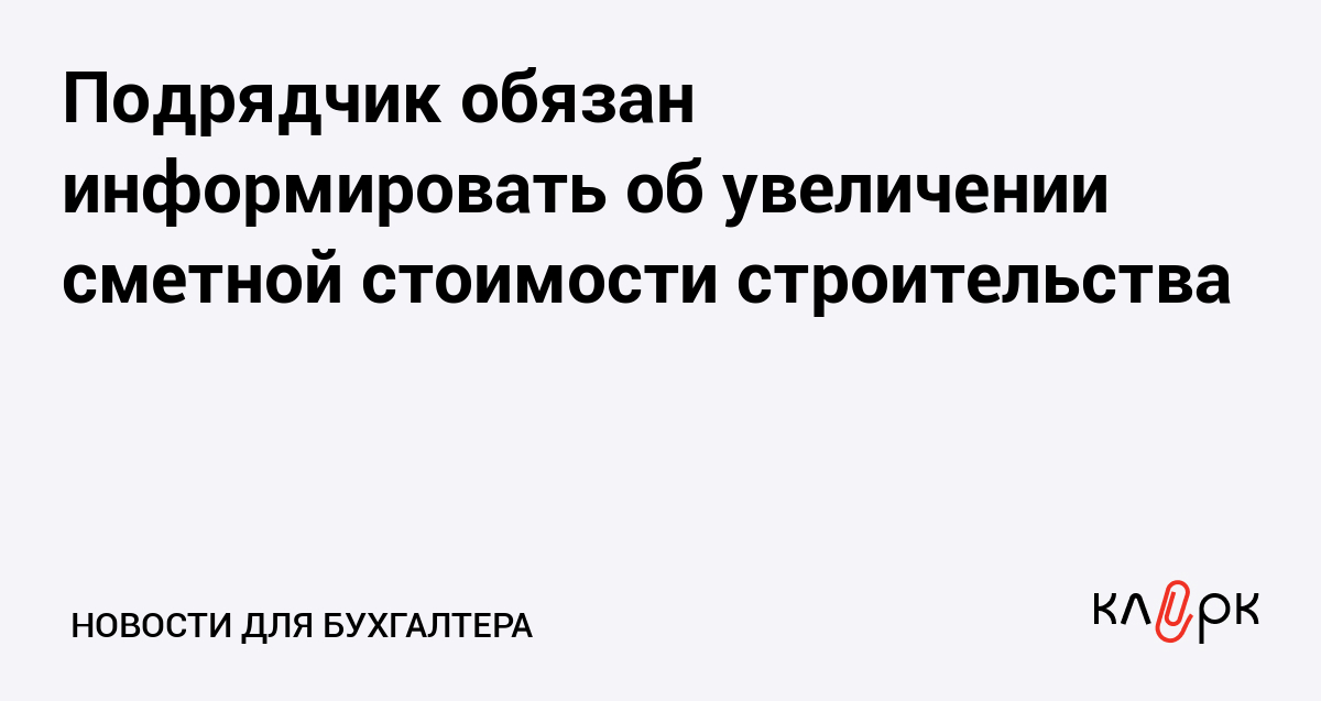 Подрядчик обязан информировать об увеличении сметной стоимости строительства