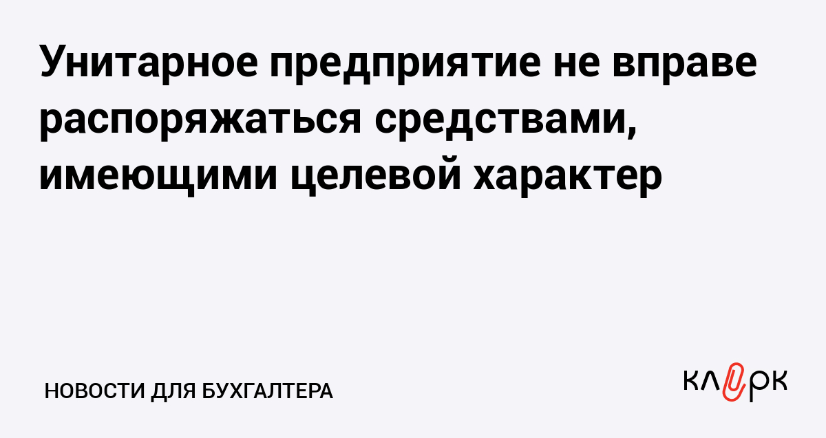 Унитарное предприятие не вправе распоряжаться средствами, имеющими целевой характер