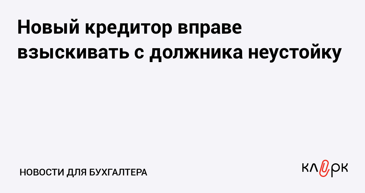 Новый кредитор вправе взыскивать с должника неустойку